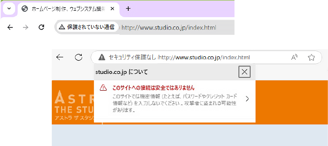 最近、多くのお客様から「ホームページに警告が表示されている」といったお問い合わせを頂戴しております。このような警告の原因と対策について解説します。