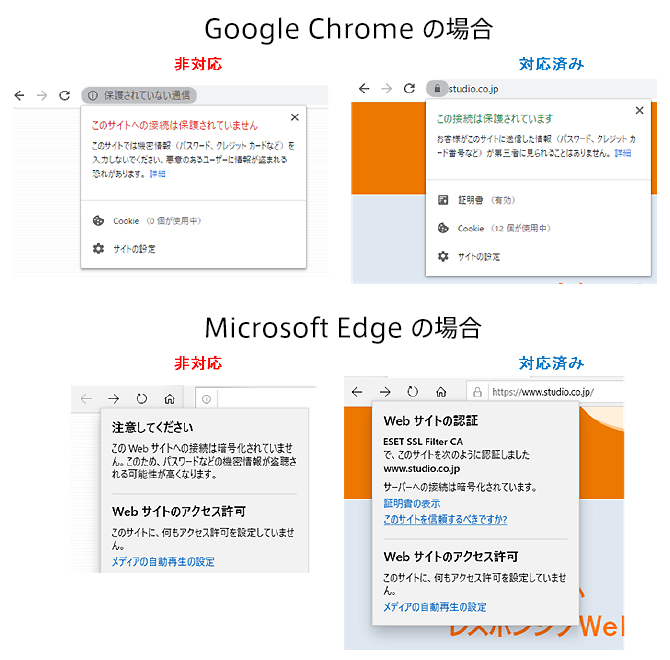 検索サイトのGoogleは、検索結果の順位を決める際に、SSL対応可否も考慮するようになりました。また企業によっては社内のパソコンからSSL非対応のホームページで情報を入力・送信することを禁じているケースも珍しくありません。