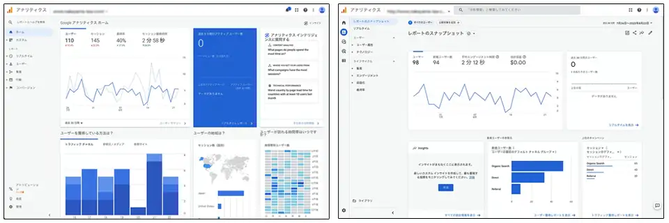 旧アナリティクスとGA4では解析結果画面が大きく異なります。