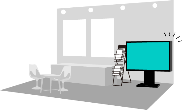 展示会ブースのディスプレイに流して目を引きます。ディスプレイの前に印刷したチラシを置いておけば、動画で興味を持った来場者が手にとってくれそうです。